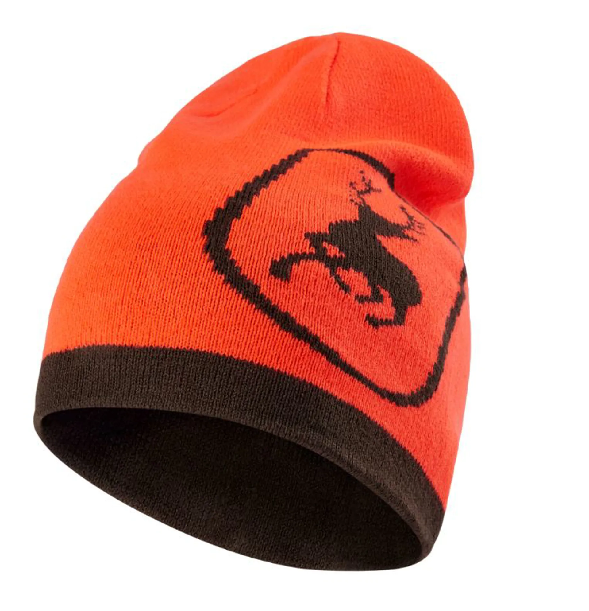 Deerhunter Reversible beanie in orange & brown with logo to orange side.