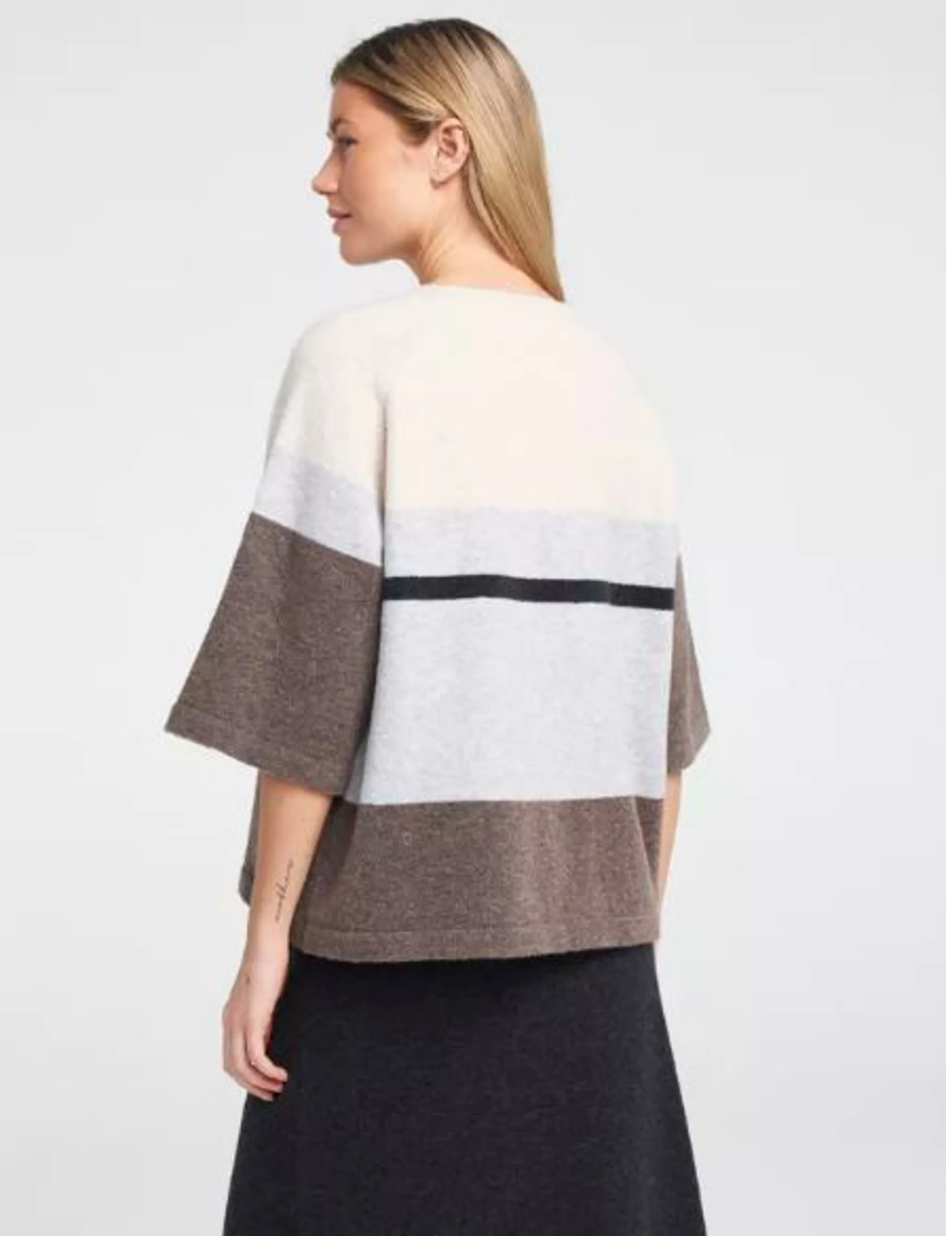 A luxuriously soft knitted sweater with relaxed fit and wide sleeves to elbow.