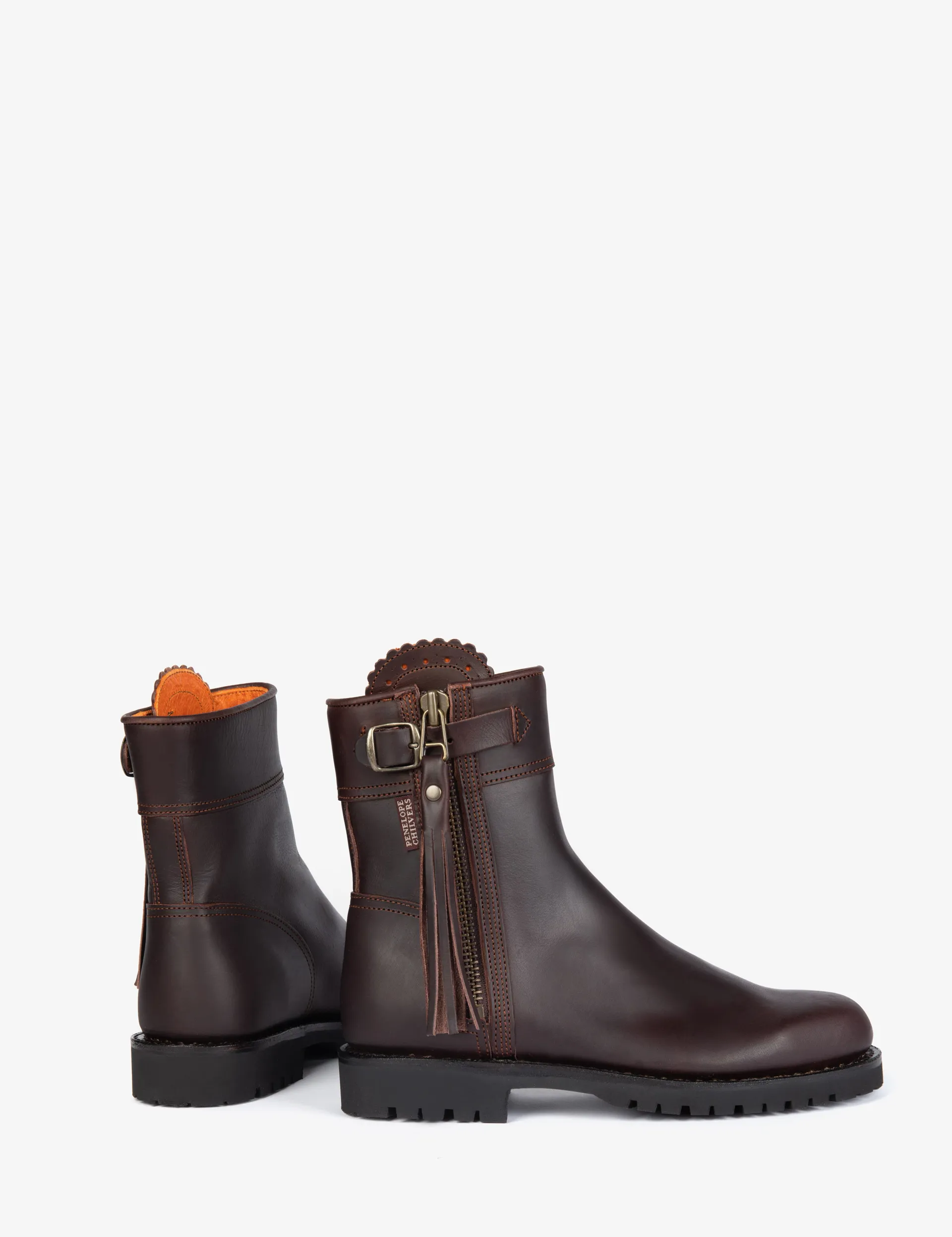 This wonderfully rich leather version of the popular Cropped Tassel boot complements the classic range of Tassel boots. A quintessential Penelope Chilvers style in vegetable dye leather with all the trademarks; luxurious with comfort, warmth and purpose. Wear this polished style with longer length dresses for a play on scale and volume or keep the look practical with new season denim.