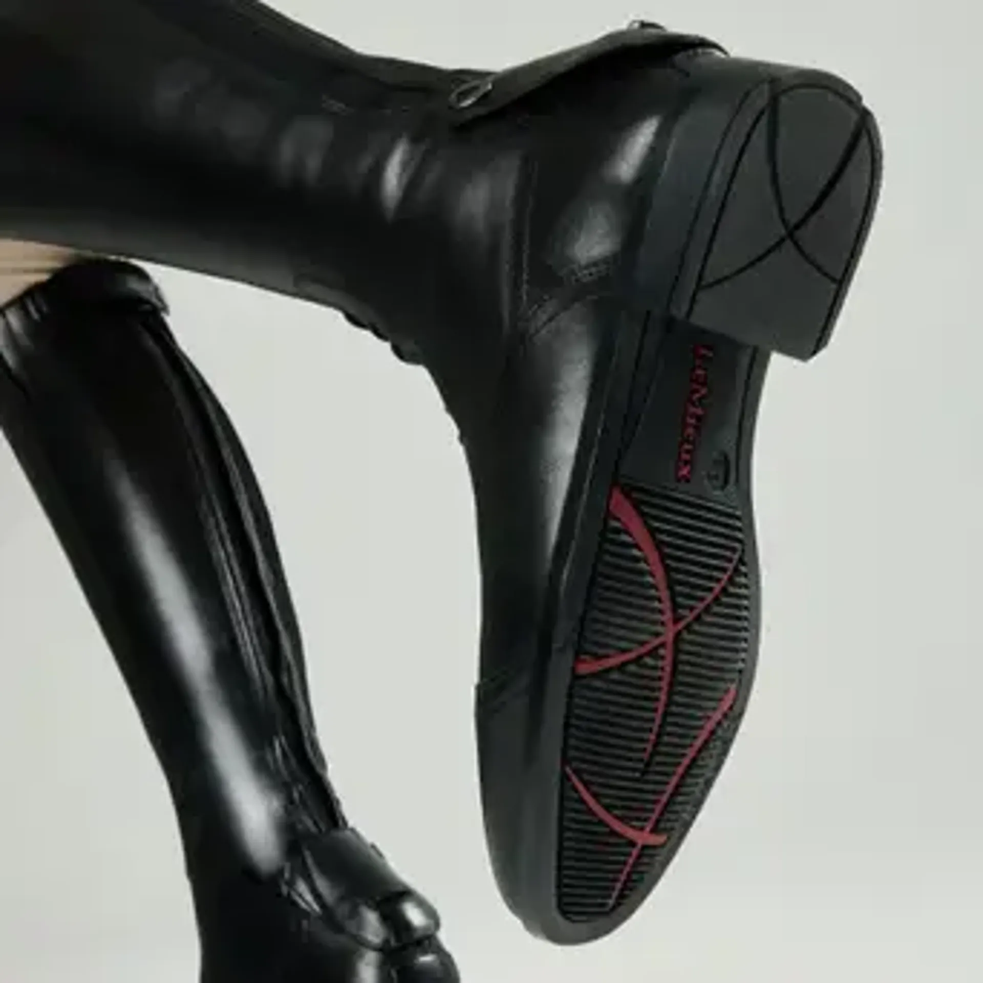 The X-Grip rubber sole provides non-slip traction in every weather, with a carefully designed linear tread pattern that interacts with your stirrup footplate grip, for maximum foot security in the stirrup.