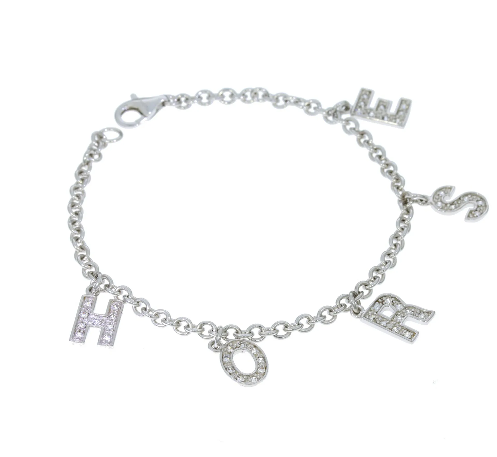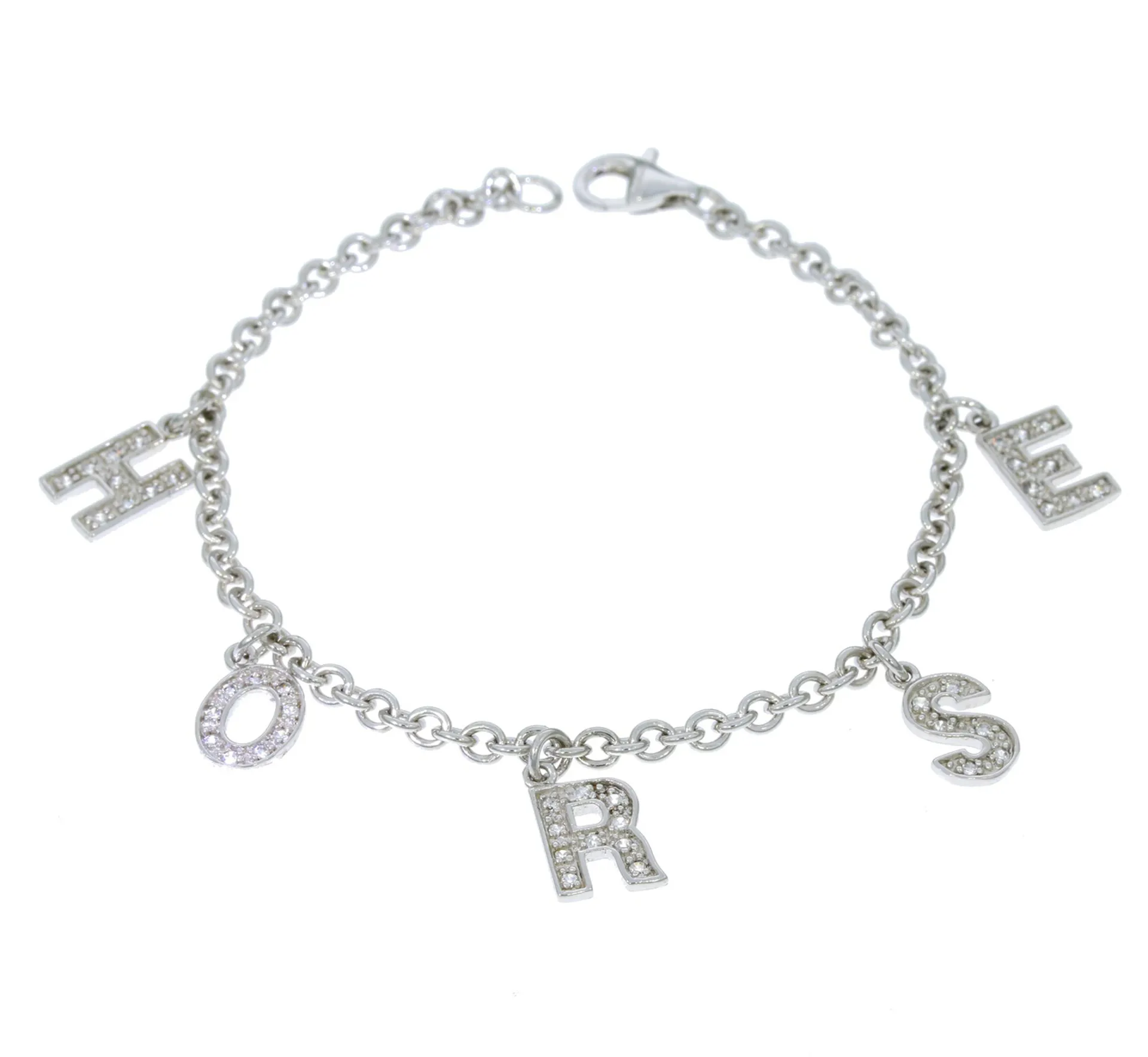 The Falabella Sterling silver Link Charm Bracelet - With Swarovski crystal letters spelling HORSE and carabina trigger clasp.