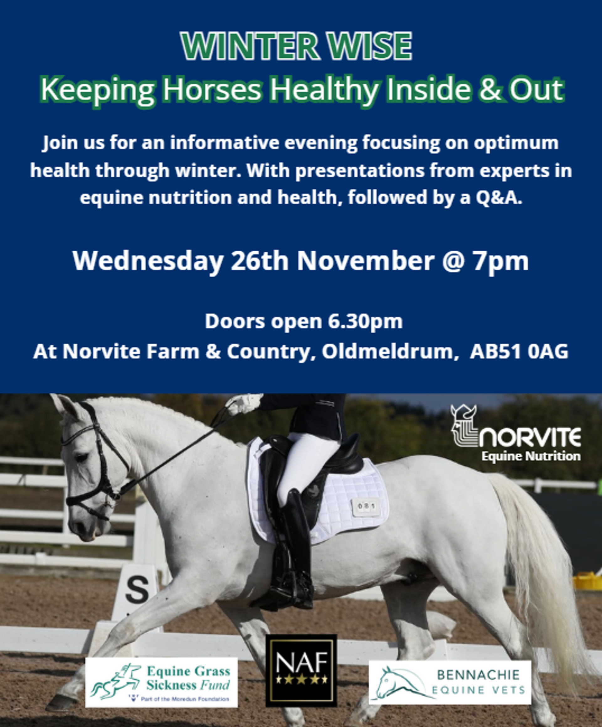 On Wednesday 26th November, 7pm at Norvite Farm & Country, Oldmeldrum.