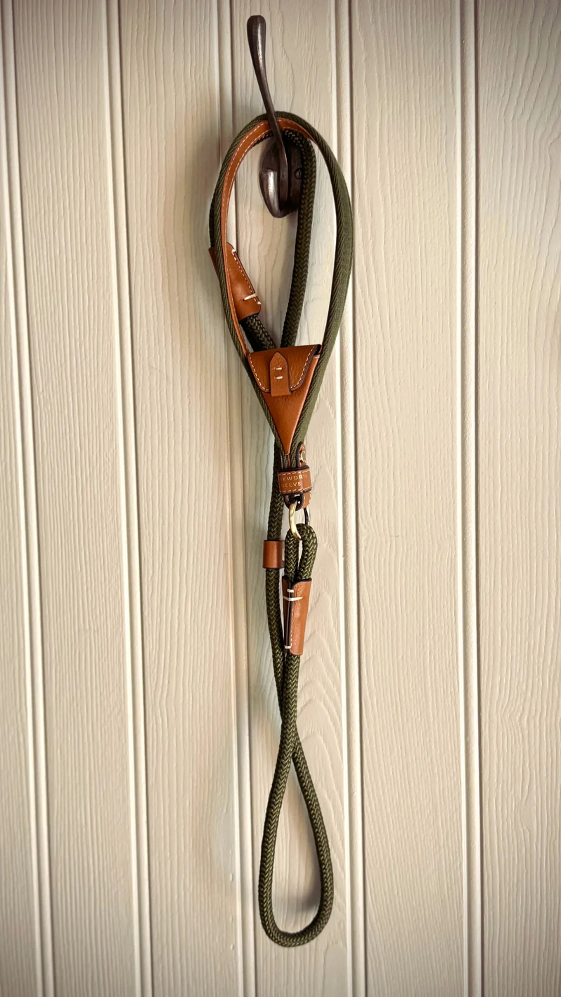 Slip Lead In Olive Green & Tan Leather with Intergrated Poo Bag Holder